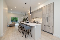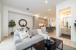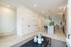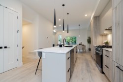 Rare end-unit, fee-simple rowhome with NO strata fees at Oxford Mews by Leone Homes. This brand-new, move-in ready 3-level residence offers 5 bedrooms & 4 bathrooms, including a I-bed in-law suite on the ground level. Enjoy approx. 2,198 sq ft of interior living, side-by-side double garage with EV rough-in, 10' main-floor and 12' bedroom ceilings, central A/C, gas cooktop, quartz countertops, and premium Fisher & Paykel & LG appliances. Smart home features include Google Nest thermostat & Leviton Smart Switches.