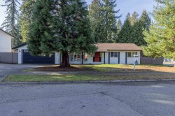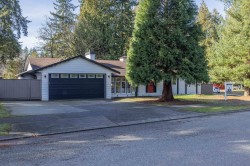 Beautifully maintained rancher in sought-after Mason Heights, Langley City. This 3 Bedroom, 2 Full Bath home features a signature sunken living room with gas fireplace and Douglas fir hardwood flooring in select areas. Set on a 8,712 sq ft privately fenced corner lot, the kitchen with modern appliances opens to a covered patio overlooking the spacious yard and serene pond, ideal for relaxing or entertaining. Double car garage with 220-volt power plus large concrete driveway offers ample parking, including RV space. Conveniently located near shopping, parks, schools and recreation.