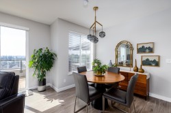 Fabulous spacious home with “endless” VIEWS beyond the city lights incl. Mount Baker, The Cascades and the peak of Orcas Island. Corner unit with a superb floor plan taking in an abundance of natural light from the oversized windows. A well designed kitchen with quartz counters and quality stainless steel appliances. Your living room has a built-in wall unit and the dining room has space to host your dinner parties. The primary bedroom boasts a walk-in closet (with organizers) and lovely en-suite. Two other bedrooms plus a “bonus” flex area. Air conditioning throughout. The two separate sundecks are HUGE (726 sq/ft), one covered one open providing year round enjoyment. Great in suite and deck storage. An additional storage locker and 2 side by side parking stalls. A truly one of a kind!