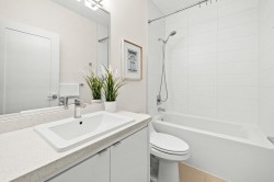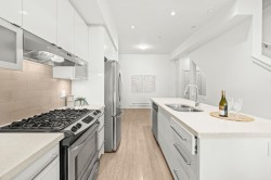 Located in the heart of Willoughby, this 2 bed, 2 bath townhouse features an incredible 500 SF private rooftop patio with gas and TV hookups—perfect for entertaining, relaxing, or soaking up the sun! It offers a bright open concept layout, stainless steel appliances, a spacious kitchen with ample storage, and large windows for great natural light. The primary bedroom includes a walk-in closet and private ensuite. Both bedrooms are generously sized. Single car garage plus covered carport—2 parking total. One of the best locations in the complex with no neighbour in front. Close to schools, Willoughby Town Centre, Costco, T&T, restaurants, and Hwy 1. OPEN HOUSE: Sunday Dec 14th 2-3pm!