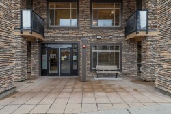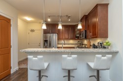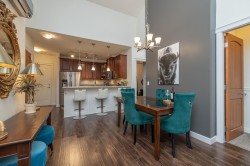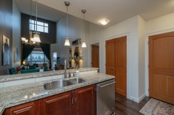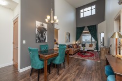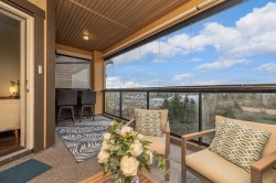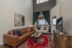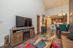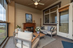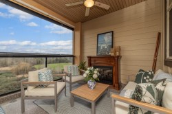 WOW!! Rare to the market, this gorgeous PENTHOUSE is a SHOW-STOPPER! Located in building A, enjoy expansive views & privacy in this 3 bedroom, 2 bath home as it impresses with soaring 19' ceilings, abundant natural light & elevated finishes throughout. Kitchen features granite countertops, warm wood cabinetry, SS appliances & gas stove. Warm your tootsies on heated bathroom floors. A/C provides year-round comfort from summer heat. Spacious primary bedroom easily accommodates a king bed plus furniture. Large enclosed solarium w/ retractable windows offers unobstructed field & mountain views - perfect for sunset evenings. 2 parking & 2 LARGE ROLL-UP storage lockers (one w/ power). Low fees include cable, gas & hot water.