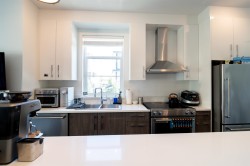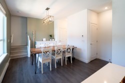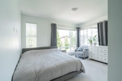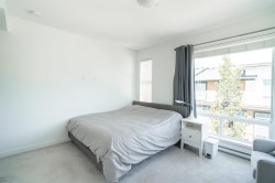 Stunning 1574 sq ft Townhome in Wexley! This generously sized 2 bed, 3 bath corner unit offers panoramic mountain views from a 400 sq ft rooftop deck. The main floor features a gourmet kitchen with quartz island and high-end KitchenAid appliances, opening to a bright living area with deck access for BBQs. 9-ft ceilings and oversized windows on the main and 3rd floors fill the home with natural light. The elegant primary bedroom boasts a walk-in closet and large ensuite. Upstairs includes an upgraded Whirlpool washer/dryer. Quality finishes and a thoughtful layout make this home spacious, bright, and luxurious.