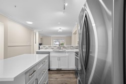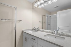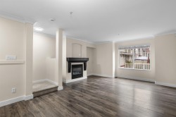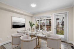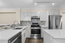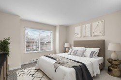 Bright, stylish, fully updated unit in Sunscape! This refreshed townhome features an airy layout, an updated kitchen with Quartz counters, newer stainless steel appliances, a spacious island, and ample storage. Enjoy a cozy gas fireplace and a rare main-floor powder room. Upstairs offers a large primary bedroom with a 4-piece ensuite and double sinks, plus two versatile bedrooms. Fresh paint, newer flooring, carpet, washer/dryer, and a new hot water tank add comfort. The fully fenced yard with covered porch and a deck is perfect for relaxing. With low fees, and a prime location near schools, shopping, and transit, this move-in-ready home checks every box.