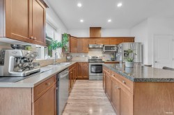 Step into this meticulous 2,127 sqft Row House in Milner Heights, where elegance meets comfort. With NO STRATA FEES, enjoy unparalleled freedom. Extensively renovated in 2022, this home blends modern style with comfort and functionality. The open-concept main floor features a spacious living and dining area, a convenient powder room, and seamless access to your fully fenced yard. Upstairs, you'll find a large primary bedroom with a walk-in closet and ensuite, along with two additional bedrooms and a full bathroom. The fully finished basement offers a generous rec room with a custom built-in bar, plus a fourth bedroom, fourth bathroom, and a laundry room. Parking is easy with a single garage & additional rear parking pad. Close to all amenities including Willowbrook Mall and Costco.