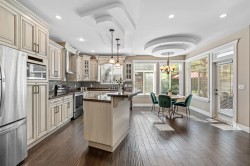 Located on a quiet street in Willoughby, this well-kept 6 bdrm&4 bath home offers a spacious, functional layout well-suited for modern family living with space for every need. The main floor features a dramatic great room with soaring ceilings, a bright home office with French doors, formal dining area, and a warm kitchen with antique cabinetry, granite counters, and hickory hardwood floors. Upstairs is a generous primary suite with vaulted ceilings, a spa-like ensuite, and three more bedrooms. The basement includes a bright 2 bdrm with a large rec room and separate entry—great for extended family or rental income. Enjoy a west-facing landscaped yard, double garage, and proximity to schools, parks, shops, and future SkyTrain.