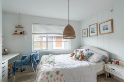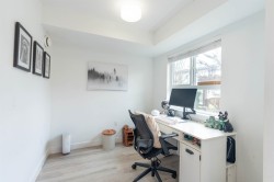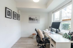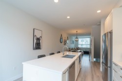Welcome to this Bright and modern 1,232 sq. ft. 2-bed + den townhome featuring 9 ft ceilings, open-concept living, and a quality kitchen with SS appliances, 5-burner gas range, hidden hood fan, French door fridge, quartz counters, and a large island. Enjoy comfortable main-floor living with forced-air heating, laminate/tile flooring, and plush carpeting upstairs. Two spacious bedrooms plus a flexible den-perfect for an office or nursery. West Coast exterior with hardy plank siding and cedar accents. Parking for two, easy street parking, low strata fees, and a prime Willoughby location near parks, schools, shopping, and transit. A stylish, well-maintained home in a sought-after community. Open house 2-4pm Feb7/8.