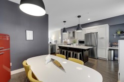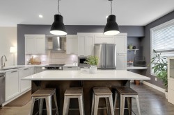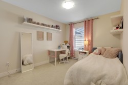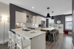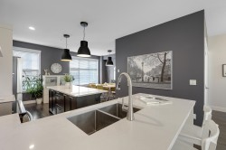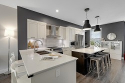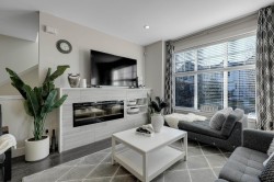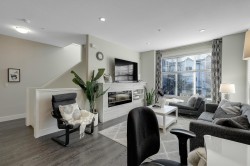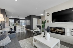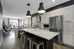 LUXURY LIVING at the Keaton! 1948sf, 4 BED/ 4 BATH UNIT is ready to amaze you. EXTENSIVE UPDATES; New Laminate flooring foyer stairs, Freshly painted throughout, NEW Fridge, Induction Stove and Dishwasher (2025), Spacious OPEN layout, gourmet kitchen w/ lots of cabinets and HUGE family sized island, Custom Built-in cabinetry in dining room, QUARTZ counter tops throughout, Generous sized BEDROOMS, 4th bedroom below + full bath w/ seamless shower. HUGE side by side DOUBLE garage and ample street parkings right outside your door. FENCED-IN yard with private your own main entrance for your pet,, ULTRA LOW maintenance fee $280.32, ONLY STEPS AWAY from highly ranked Richard Bulpitt school and WALKING distance to park , shoppings and transits. HAS TO BE SEEN!!!