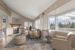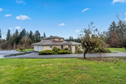 Set on 4.43 private acres backing onto the Salmon River, this property combines natural beautify with everyday convenience. The well-kept home features a spacious primary bedroom on the main with ensuite, walk-in closet, and private patio access, plus formal living and dining rooms and a bright sunroom that captures the surrounded greenery. The land offers space for a hobby farm and a large graveled area ideal for parking or storage, with zoning allowing up to three commercial vehicles (max 5,600 kg each), and an outbuilding with power. Just 5 minutes to Fort Langley and minutes to Walnut Grove's shops, dining, recreation, and Hwy 1.