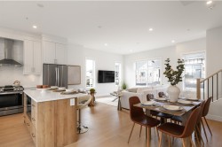 ***OWN THE SHOWHOME!* GORDON SQUARE, carefully constructed by Paddington Properties. Now 65% sold, come experience the exceptional quality at this unique Parkside community of only 32 homes, nestled in a quiet residential neighbourhood yet only minutes to Willoughby Town Ctr, schools, Costco & amenities. This large,bright & open 3 bed & flex home features a uniquely wide layout. Oversized windows throughout. Soaring 10' ceilings on main level with a stunning kitchen including gas range, dedicated hood fan, built in microwave and quartz countertops. Upper deck with gas bbq hook up. Primary bedroom boasts large walk in closet, 4 pc ensuite w/ glassed in shower & 2 sinks. Private flex room on lower level as well as outdoor patio. Side x side garage with EV rough in. Open Sat/Sun 12-5.