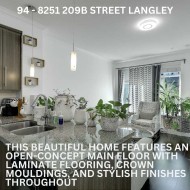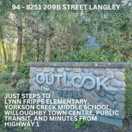 Welcome to Outlook — Willoughby’s Most Sought-After Location! This beautiful home features an open-concept main floor with laminate flooring, crown mouldings, and stylish finishes throughout. Enjoy a bright living and dining area, a modern kitchen with a large island, ample cabinetry, granite countertops, and stainless steel appliances. A convenient powder room on the main level is perfect for guests.Upstairs offers 2 spacious beds + den and 2 full baths, including a comfortable primary suite. The lower level provides access to a charming patio, single-car garage, and covered carport for added convenience.Located in a fantastic family-friendly neighbourhood, just steps to Lynn Fripps Elementary, Yorkson Creek Middle School, Willoughby Town Centre, public transit, and minutes from Highway 1