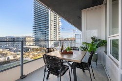 Elevated Living at The Towers – Langley’s First Concrete High-Rise! This stunning 1-bed + den corner unit offers beautiful N/W views and over 300 sq. ft. of wraparound patio space. Enjoy a sleek modern kitchen with a large island and Fulgor Milano appliances, perfect for cooking or hosting. The bright, open layout features A/C, high-end finishes, and a walk-in closet in the primary bedroom. Includes EV-ready parking, a storage locker, and access to top-tier building amenities. With schools, transit, shopping, and the Hwy #1 nearby, this home combines comfort, style, and unbeatable convenience. Open House Sat. Feb 7th 2-4pm and Super Bowl Sunday before the game 1-3pm.
