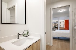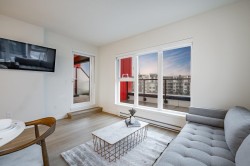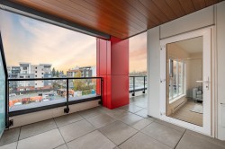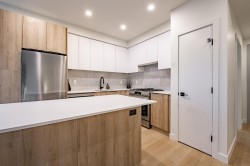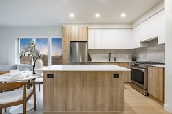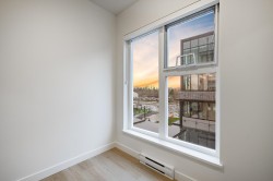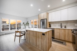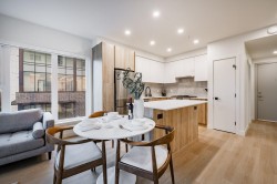 The District in Willoughby Town Centre, Langley: Discover urban village living at its finest! This bright & stylish 2 bed + 1 bath gem (707 sqft) in the heart of The District boasts gorgeous upgraded kitchen cabinets that seamlessly match the sleek flooring—creating a warm, modern flow you'll love coming home to with 110 sqft wrap around deck. Steps from everything: trendy cafes, delicious restaurants (Korean, Indian, sushi & more!), grocery, fitness spots, boutiques, and daily essentials. Stroll to the massive 52-acre Yorkson Park for trails, playgrounds, and green escapes. Transit, top schools, and recreation are all right here—live, work, play in Langley's most walkable hotspot!