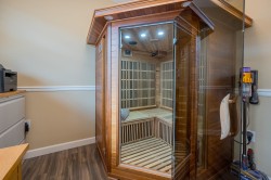 LUXURY 3BR, 2-BATH CORNER PENTHOUSE WITH VAULTED CEILINGS at Yorkson Creek Walnut Ridge IV, a premier complex in Willoughby’s vibrant and growing community. This high-quality, top-floor accessible home offers exceptional comfort with vaulted ceilings & gorgeous mountain views. The 266 sqft enclosed solarium features retractable glass panels & motorized blinds, ideal for year-round use. Premium features include A/C, gas stove, upgraded appliances, and private in-suite sauna. Thoughtful details include pot filler, garburator, wall safe, built-in medicine cabinets, heated bathroom floors & mirrors, and 4 mini-split HVAC units. 2 parking spots; 1 secure storage locker next to parking. 1 Pet: dog, any size or 1 cat. Meticulously maintained by original owner. One of the best units in Willoughby!
