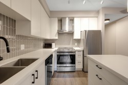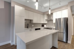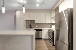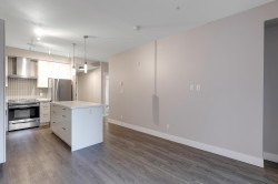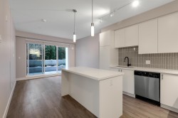 Best-priced unit in the building! This modern 1 bed, 1 bath condo is vacant and move-in ready, featuring an open-concept layout, contemporary kitchen with quartz countertops, large island, stainless steel appliances, and in-suite laundry. Bright living space opens to a spacious private patio, ideal for outdoor seating. Well-sized bedroom and modern bathroom with clean, neutral finishes throughout. Steps to Willoughby Town Centre with shops, cafés, restaurants, groceries, and services. Close to Yorkson Community Park, Langley Events Centre, schools, quick Hwy 1 access, and future transit expansion. Ideal for first-time buyers or investors.