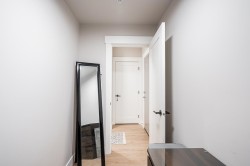 Welcome to this modern and thoughtfully designed 1 bed+den unit, offering 661 sqft of comfortable living in the heart of Willoughby. Situated on the quiet inside of the third floor, this unit provides a bright and functional open-concept layout that maximizes every inch of space. Enjoy cooking in the full-size kitchen featuring sleek cabinetry, quartz countertops, and stainless steel appliances. The generous living area opens to a private balcony, ideal for relaxing or entertaining. The versatile den is perfect for a home office, nursery, or extra storage. This home includes ample closet space, in-suite laundry, and access to Hudson & Singer’s lifestyle amenities, including a courtyard, lounge, and communal workspaces. Located steps from Willoughby Town Centre, schools, parks, and transit.