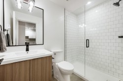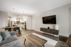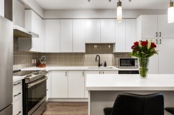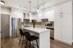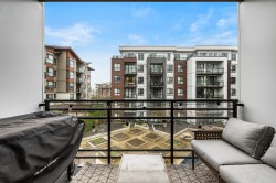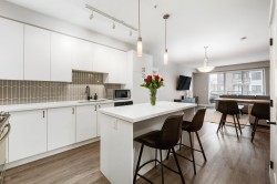 Welcome to Hudson & Singer, a sought-after community in the heart of Willoughby! This bright and spacious 1,019 sq. ft. 2-bedroom, 2-bathroom condo offers an open-concept layout with high-end finishes. The modern kitchen features stainless steel appliances, quartz countertops, and ample storage. The large primary bedroom includes a walk-through closet leading to a spa-like ensuite with a double vanity and glass-enclosed shower. A versatile second bedroom is great for guests, an office, or a growing family. Step outside to your private balcony, ideal for relaxing or entertaining. Enjoy fantastic building amenities, courtyard garden, and kids' play area. Located within walking distance to Willoughby Town Centre, parks, schools, and transit. 2 parking stalls and storage unit included.