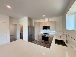 This stunning, modern home offers a total of 4 bedrooms and 3 bathrooms, providing ample space for family and guests alike. Step inside and be captivated by the stylish and functional design. The heart of the home boasts quartz kitchen countertops, offering a touch of elegance and durability for all your culinary adventures. Durable vinyl flooring flows throughout the main living areas, creating a seamless and easy-to-maintain aesthetic. Entertaining is easy with the convenience of natural gas BBQ outlets on your expansive covered deck. Imagine hosting gatherings while soaking in the breathtaking panoramic views of the surrounding mountains and picturesque valleys views. The backyard is currently being expanded, promising even more outdoor space for relaxation & recreation. This property also offers versatility with a fully self-contained 1-bed, 1-bath suite on the first level, complete with its own separate entrance. This is an ideal setup for extended family, or generating potential rental income. Both the main house and the suite are equipped with a fire sprinkler system, ensuring an added layer of safety. Located in the desirable Lumby area, The Edge offers a lifestyle that blends tranquility with convenient access to local amenities and the natural beauty of the Okanagan. Don't miss this exceptional opportunity to own a brand-new home with stunning views, income potential, and modern features. Schedule your private tour today and envision your future at The Edge!