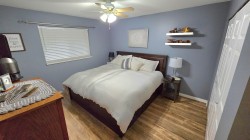 Welcome to the friendly and well-maintained Meadow Ridge Estates. This bright upper-floor townhouse offers an ideal blend of comfort, style, and convenience, with abundant natural light throughout. The stunning gourmet kitchen features granite countertops, updated cabinetry, and newer Samsung appliances, making it perfect for everyday living and entertaining. You’ll find two spacious bedrooms, each with oversized closets, along with a large in-suite storage room for added functionality. Recent renovations include modern laminate flooring, updated kitchen finishes, and thoughtful upgrades throughout. Major improvements include a newer roof and a brand-new hot water tank. Enjoy the convenience of covered parking located close to the unit and an unbeatable location.
