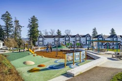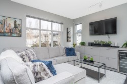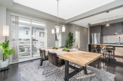 Stunning duplex-style townhouse built by Polygon and impeccably maintained. This 3-bedroom, 2.5-bath corner unit features a bright open-concept design with extra windows for natural light. The spacious dining area opens onto a large deck perfect for entertaining. Additional highlights include a side-by-side garage and private fenced yard. Enjoy resort-style amenities with a clubhouse, exercise room, outdoor pool, and hot tub. Fantastic central location close to parks, schools, and more.