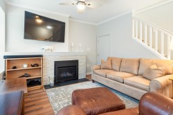 Welcome home to Gabriola in this beautifully updated Maple Ridge townhome. Thoughtful renovations include fully redone ensuite with new flooring,fresh paint throughout(walls,ceilings,doors,baseboards,and crown moulding),and brand-new carpet. This gives the home a clean,modern,move-in-ready feel.Beyond the cosmetic upgrades,this home truly shines in how it lives. An R50 insulation upgrade and a new temperature-controlled fireplace efficiently heat the lower level, resulting in very low Hydro and natural gas bills. Step outside to your large cedar deck,the perfect spot for summer BBQs,evening gatherings, or quiet mornings with coffee. With a natural gas BBQ hookup in place,entertaining is effortless and clean,no propane tanks required.Excellent strata,family friendly,even has a playground.