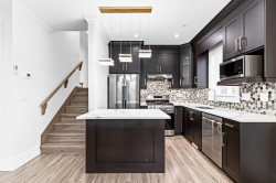 "Silver Winds", a bright and modern corner unit townhome in the heart of scenic Silver Valley—just steps from Maple Ridge Park, Alouette River, and surrounded by lush trails. This stylish 2-storey home offers 4 bedrooms, 3.5 bathrooms with a functional layout. The main floor boasts a white-on-white kitchen with quartz counters, a large island, cozy gas fireplace, laminate floors, and open-concept flow for effortless entertaining. Up you'll find 3 generous bedrooms, Ancl a spacious primary suite with full en-suite. Downstairs is a major bonus: a fully finished basement with separate entrance, wet bar, rec room, 4th bedroom, bathroom, and rough-in for a second laundry—ideal for tenant or extended fam, Roughed in for a SUITE~! open house nov 23RD 12-2