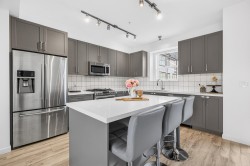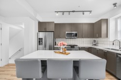 This is a home that works for real life. Enter from the lower level with a proper mudroom & nook, then head up to a bright, open main floor where the kitchen, dining, and living space flow together—perfect for everyday living and easy hosting. Fresh paint, laminate flooring, quartz counters, island seating & stainless steel appliances keep things clean and modern, with a balcony off the dining area for BBQs or quiet evenings. A 2-pc powder room completes the main floor. Upstairs offers side-by-side laundry with extra storage & carpeted bedrooms. Rare parking for 4 vehicles with a double garage + driveway. Fronting 240th St makes commuting simple, with transit nearby. Walk to schools, parks, and trails in this family-friendly East Maple Ridge location. Open House Sun, Feb 8 from 1-3pm.