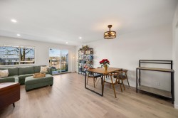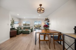 Never miss a SUNSET again!! This incredibly spacious, FULLY UPDATED in 2024, near 1800 sq ft 3 bedroom, 2 full bath townhome with STUNNING West facing sunset views of the Fraser River awaits!! The main floor features two bedrooms, full bath, updated kitchen with new appliances, quartz counters, and wrap around patio to your primary bdrm! Below you'll appreciate an additional bedroom and a grand rec room, full bath, wet bar, gas F/P, huge laundry room & walk out access to your private fully fenced backyard. Luxury vinyl flooring throughout, new central vac, PEX water supply pipes, professionally painted, door hardware, light fixtures all complete for your comfort. 2 parking well run complex, close proximity to schools, shopping and commuter routes, move in and enjoy the never ending view!!