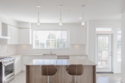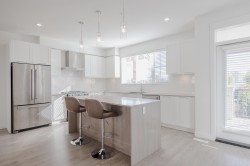 Welcome home to 'Kanaka Hill'. Built in 2019, this enclave of boutique townhomes set on a south slope just a 3 minute walk to the highly acclaimed Kanaka Elementary School offering revolutionary year round schooling schedule. This 4 bedroom, 3.5 bathroom home is among the largest in the complex with open concept main floor featuring 9' ceilings, large island kitchen with gleaming quartz counters, stainless appliances and access to covered deck and fully fenced rear yard. Upper floor enjoys 3 large bedrooms including primary with massive walk-in closet and ensuite with dual sinks and a shower for 2. A fourth bedroom with full ensuite in the basement is ideal for extended family or house guests. RARE 4 car parking: side by side 2 car garage plus lengthy double driveway for full size trucks.