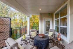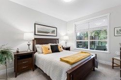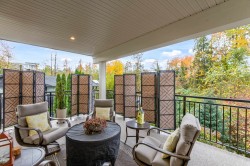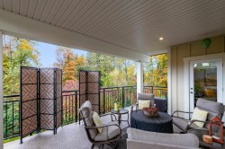 FALCON HOUSE by award winning Falcon Homes! Unsurpassed quality in one of Maple Ridge's premier condo developments, this is a RARE CORNER UNIT with stunning GREENBELT VIEW! This 2 bed/2 bath home offers over 1,100 sq ft of open concept living, highlighted by 9 foot ceilings, quality finishing & millwork, a luxury QUARTZ island kitchen w/ shaker cabinets, comfortable dining area & living space! Two large bedrooms both with GREENBELT views, including the primary w/ full 4 piece dual sink ensuite & walk-in closet w/ organizers! Bonus entertainment sized COVERED DECK w/ SOUTHWEST exposure for year round enjoyment! 2 parking stalls, storage, proactive strata & conveniently located to the amenities of downtown Maple Ridge - this is a downsizers dream & shows like new!