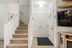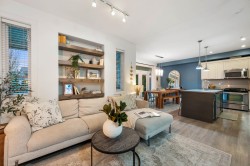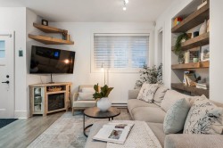 Stunning townhouse that looks and feels like a single-family home. This 2-storey corner unit in sought-after Village Green features a fully fenced, west-facing yard-perfect for outdoor living. Enjoy direct access to your large private yard with custom paving stone patio and BBQ gas hookup. The open-concept main floor offers a gourmet, modern kitchen with quartz countertops, stainless steel appliances, and a convenient powder room. Upstairs includes three spacious bedrooms, highlighted by a generous primary bedroom with walk-in closet and ensuite. Move-in ready and impeccably maintained. Open house Saturday 3:00-4:30