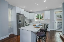 2 storey w/registered TRU basement this 2136 living space w/4 bed/4-bath home recently renovated extensively and upgraded. Features incl an updated kitchen with quartz counters, large island, slide-out range hood & corner cabinet pullout unit., pantry, stylish backsplash, and S/S appliances. Upstairs offers 3 generous bedrooms, including a primary suite with walk-in closet and greenbelt views. Basement includes a large bedroom, kitchen w/QUARTZ counters, living room with separate entrance, walk-in closet, laundry, and modern finishes. South-facing yard with new deck, double detached garage off lane, A/C rough-in, hardwood flooring, gas fireplace w/mantle, modern pot & accent lighting, 3yrs hot water tank, new paint in & out. Quiet, family friendly Albion area, Greenbelt has a creek