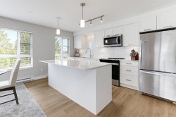 This like-new, 3rd-floor corner unit at Edge on Edge II offers over 900 sq ft of modern living with breathtaking views of the Golden Ears Mountains. Built in 2018, this 2 bed, 2 full bath home was substantially rebuilt in 2025, providing a pristine, move-in-ready space. Its prime location is a walker's paradise, steps from shopping, dining, and essential healthcare. Enjoy an active lifestyle with the Leisure Centre, parks, and schools all within close proximity. Commuting is a breeze with easy access to the West Coast Express and public transit. Experience urban convenience and natural beauty right at your doorstep.