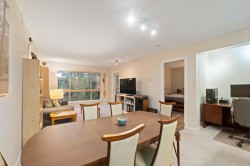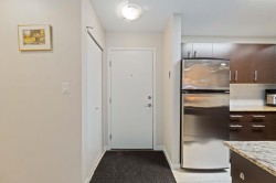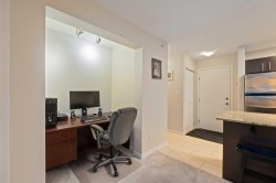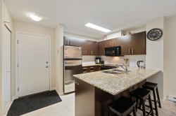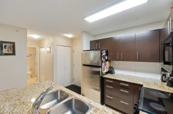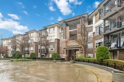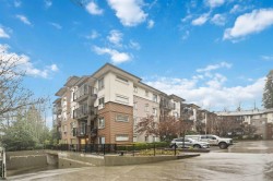Spacious top-floor 1 bedroom plus den home featuring a well-designed open-concept floor plan and peaceful greenbelt exposure. With over 700 sqft the modern kitchen is equipped with granite countertops and stainless steel appliances, ideal for everyday living and entertaining. Large windows bring in natural light, while the generous balcony overlooks the greenbelt, offering added privacy and a tranquil outdoor retreat. Conveniently located within walking distance to town, transit, West Coast Express, and recreation amenities. Includes a storage locker and 1 parking stall for added convenience.