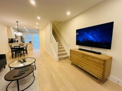 Welcome to this stunning 3-bedroom, 2.5-bath townhouse in the sought-after Rock Ridge community, offering a perfect blend of comfort, style, and modern living. This bright, spacious home features brand-new engineered hardwood floors on the main level and fresh paint throughout, including the garage, creating a clean, move-in-ready feel. The open-concept living and dining area is ideal for entertaining, with large windows that flood the space with natural light. Enjoy a double-length garage with room for parking, storage, or a home gym. Modern upgrades include LED lighting, smart thermostats, and smart locks. Pet-friendly strata with approved A/C installation. Close to parks, trails, schools, and amenities.