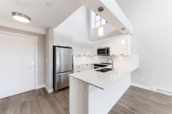 Edge 2, substantially rebuilt 2 bedroom penthouse with loft (1 bedroom on main and another on the loft), 2 full baths with laminate flooring throughout living, dinning and kitchen, and quartz counter tops. SELDOM AVAILABLE 18 ft. ceiling height in living room, dinning room and kitchen. Suite is flooded with day light through extra high windows. Panoramic mountain view and walking distance to elementary school, park, restaurants and shopping. Property comes with one parking and one storage locker.