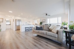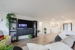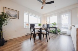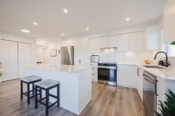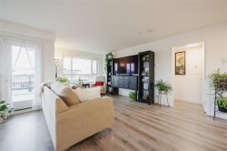 SIMPLY THE BEST! This top floor corner unit on the Northwest corner in "Edge 3" by Maclean Homes enjoys mountain views to the North and sunsets to the West. The unit is just over 1 year old, and in pristine condition with gleaming wood floors, white stone countertops and ample white shaker style cabinets. Large kitchen island ideal for entertaining and stainless appliances which complete the modern look. There's a large partially covered sundeck which makes a great extension to the living space to take in the stunning view of the Golden Ears mountains. Walking distance to the Leisure Centre, Trevor Linden Fitness, Shopping, Restaurants, and the new Eric Langton Elementary School. One designated parking stall and storage locker in the secure underground, and one pet permitted.