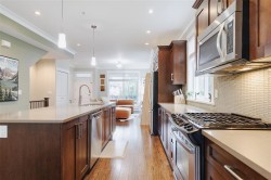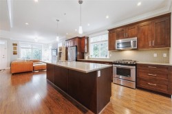 Welcome home to 'Two Birds' by award winning luxury home builder, Wallmark Homes. This end unit is just over 1500 sf with lots of extra windows creating an inviting oasis for all who visit. Open concept main floor with wood flooring. Stone counters, stainless steel appliances and a large kitchen island make it ideal for entertaining. New carpet on stairs and new flooring upstairs. Three bedrooms and two full bathrooms up, including a large primary suite with walk-in closet and well designed ensuite bathroom. There is a tandem double garage, plus lots of street parking out front. Two decks for your enjoyment. Great location! Walk to Alexander Robinson and Kanaka Creek Elementary schools. Bus stop right across the street makes getting around easy.