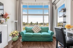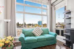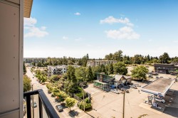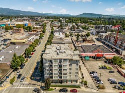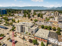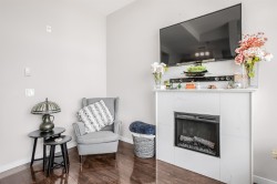 Welcome to 223rd North! Come checkout this unique, lovely 1 Bed Studio Penthouse in Downtown Maple Ridge with up to 14ft vaulted ceilings! Built in 2013, this unit come with White Quartz Countertops, Stainless Appliances, luxury thick dark mahogany coloured laminate flooring, built-in Electric fireplace & a Strata Approved professionally installed Air-Conditioning/heat-pump unit to keep you cool in the summer and warm in the winter. Unobstructed South, South-West, North-West views. In-suite Laundry and tons of closet space for all your belongings. Absolutely in perfect condition. An ultimate walk-score of 96 with Walmart, Haney Place Mall, Acts Centre, Leisure Centre, Club 16 Fitness, Banks and Restaurants with Beckett/Dog Park 100m away.