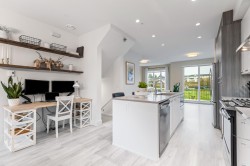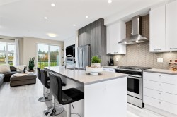Welcome to Creekside where nature, comfort, and convenience meet in a warm, family-friendly community. This beautiful 3-storey townhouse offers 3 bedrooms and 3 bathrooms, an ideal fit for a growing household close to schools, shopping, and everyday essentials. The open-concept main level filled with thoughtful finishes large centre island, gas range and BBQ hookup. Feature walls add character to the living room and bedrooms, plus barn door leads to the spacious primary suite with generous walk-in closet. Ensuite has double vanities & a walk-in shower. A double tandem garage provides yard access, extra storage, and a versatile bonus area perfect for a home gym or office. 2 pets allowed (dogs or cats) NO size or breed restriction. Close to Kanaka Creek Park. OPEN HOUSE SUNDAY FEB 1st 1-3 PM