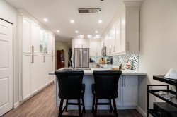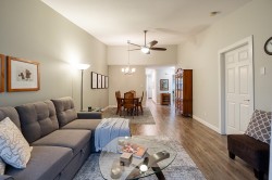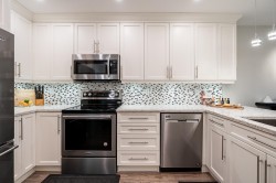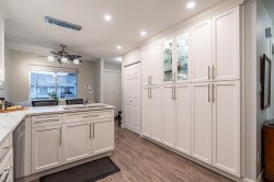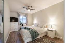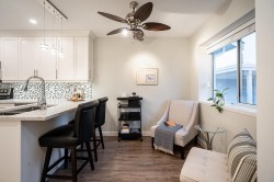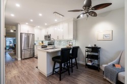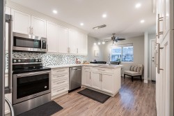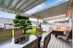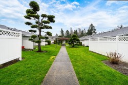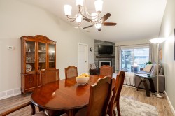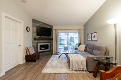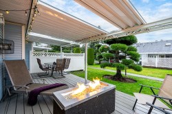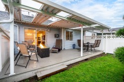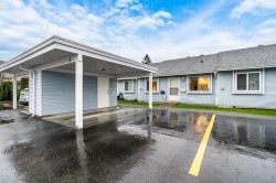 Welcome to St. Georges Village, a vibrant cooperative 55+ social community. This turn-key rancher townhome offers total peace of mind with re-piping, a newer efficient furnace/hot water. The interior features an airy layout with spacious rooms, vaulted ceiling, wheelchair access. Completely updated with laminate flooring throughout, modern walk-in shower in main bath + 2pc ensuite, newer paint fireplace insert & stone surround, white shaker kitchen with ample storage built-in cabinets, quartz countertop & breakfast bar, stainless steel appliances & a cozy eating/reading nook. Enjoy the large south-facing, covered, low maintenance vinyl deck year round! Close to shopping, Maple Ridge Leisure Centre & an abundance of eateries, and just a short walk to public transportation.