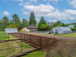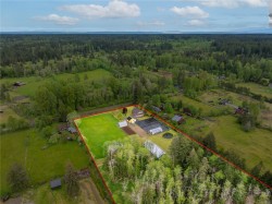 Welcome to a turn-key homestead or market garden on nearly 10 acres in Deep Merville- a peaceful rural community with quiet roads and a strong local connection. This unique package offers privacy, productivity, and potential. At the heart of the property is a cozy, spacious 3-level home featuring exposed beams, a wood stove, and an open-concept layout. The generous kitchen overlooks the gardens and is full of natural light. The five-piece bathroom has been updated, and the whitewashed tongue-and-groove ceilings add character throughout. With seven bedrooms and four bathrooms, there's room for guests, family, or rental flexibility. The mostly finished basement includes an in-law suite and a grow room. The land is set up for market gardening: landscape-fabric beds, greenhouse, irrigation from a dugout, and gear for 150 chickens. Outbuildings include a large barn, drive shed with enclosed cabin, Quonset, and workshop-ready for your next chapter