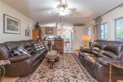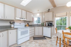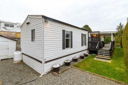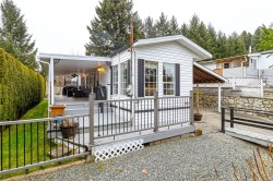 Welcome to Kerry Village, a beautifully kept 55+ Bare Land Strata offering peaceful, low-maintenance living in Mill Bay. You own both the land and home, with no pad rent and a low strata fee of just $60/month.This bright, well-maintained home features open-concept living with vaulted ceilings, skylights, and treed views. The flexible layout is currently one bedroom but can easily be converted to two — either by returning the dining area to a bedroom or adding a wall in the spacious recreation/family room.The primary bedroom offers a walk-in closet and ensuite, plus space for a small office. A cozy propane fireplace warms the family room.Enjoy a private, partially fenced yard with a large covered deck, especially quiet and secluded near the mature hedge. Easy-care landscaping, attached carport, and storage shed add convenience. Kerry Village offers a friendly community feel with summer picnics and BBQs, all minutes from Mill Bay shops and services.