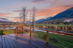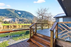 This rare quarter-acre waterfront property is truly one of a kind. An impressive covered front porch sets the tone, built with true 2×6 Douglas fir, exposed beams, and solid wood craftsmanship, creating a timeless lodge-inspired feel. Designed for year-round enjoyment, the porch features a solid masonry wood-burning outdoor fireplace/BBQ, ideal for entertaining. The backyard offers stunning water and mountain views with direct access to Hatzic Lake, plus a large firepit area perfect for relaxing mornings or evenings. Inside includes a spacious kitchen with oak cabinets and a bright sunroom/dining area. Enjoy fishing, kayaking, boating, and paddleboarding steps from your door. Just 10 minutes to downtown Mission and 20 minutes to Abbotsford—this is a true waterfront rarity.
