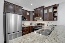 *Stunning 3-Level Townhouse* in the Highly Coveted Horizons Complex. Beautifully upgraded Home impresses with Luxury finishes & Exceptional design. Soaring vaulted ceilings with a bright open-concept layout, a showpiece stone Fireplace, gleaming Granite Countertops, Stainless Steel appliances and with an oversized Breakfast Bar creating a space that feels both Stylish & Inviting. Gorgeous Tile work and rich Hardwood floors flow out to a private upper deck-perfect for morning coffee or evening unwinding. Upstairs features 3 spacious Bedrooms, a very convenient 2pc Bath on the main, while the lower level offers a private-entry to the 4th Bedroom Flex/Media/gym leading to your very own Backyard. This Home is Perfect for First-time buyers and Growing Families. Book your Showing Today!!