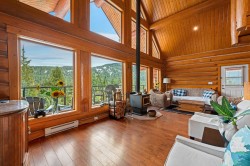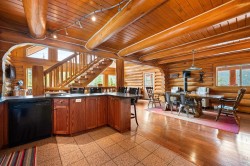 Custom log chalet nestled in Sasquatch Mountain boasts stunning craftsmanship and rustic charm. Successful Airbnb history, this charming abode promises a memorable retreat all year round. This 3 level chalet offers an open floor plan on the main level with vaulted ceilings, large windows looking at the ski hill & cozy wood burning stove, 3 bdrms on the upper floor with the ability to sleep up to 9 people comfortably. Two wrap-around decks that offer unobstructed views of the ski hill and surrounding landscape. Large rec room & wet bar downstairs are perfect for entertaining. Adding to the allure of the property is a brand-new hot tub overlooking the ski hill. Ample storage that includes heated crawl & snowmobiles. Backup power generator & option for gas line. Nicest views on the mountain!