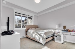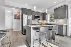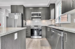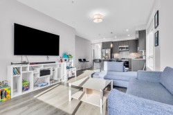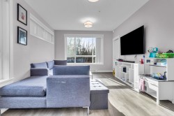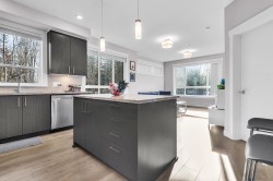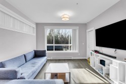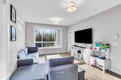 This like-new 2-bedroom, 2-bathroom condo with 2 parking stalls in Preston on 14th is a fantastic opportunity for first-time homeowners or investors. Located in a peaceful setting, the unit overlooks a well-maintained garden and backs onto a serene greenbelt. Conveniently, there's a bus stop just around the corner, and an elementary school is within walking distance. The West Coast Express is a short drive away. Inside, you’ll find quartz countertops, under-mount sinks, spa-inspired bathrooms, a gas stove, built-in microwave, and a fridge with an ice/water dispenser. Pet lovers will appreciate the dog wash station at the entrance, with no size or number restrictions on pets. The building also offers a yoga studio, gym, and outdoor playground.