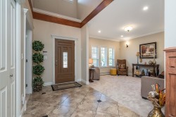 Ideal for growing families, this custom-built executive 2-storey sits on a flat, private 1+ acre lot in desirable West Mission. Offering over 3,700 sq ft, the home features a rare primary bedroom on the main floor with 5-piece ensuite and walk-in closet, plus four spacious bedrooms upstairs. Designed for everyday family living, the maple gourmet kitchen includes an oversized island, built-in stainless steel appliances, and granite countertops, flowing into formal and casual living areas. Enjoy outdoor space with a large concrete patio and expansive, usable yard perfect for kids, pets, and gatherings. Zoning allows a coach home and workshop, with RV parking and aggregate driveway. Minutes to Sports Park, golf course, town, and highway. City water and sewer at lot line.