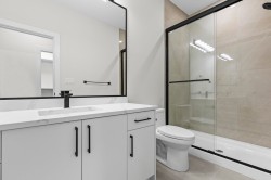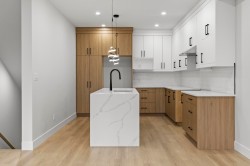 3 level 1/2 duplex with above ground 1 bedroom suite! Main floor enjoys Primary bedroom with walk-in closet and tiled ensuite, modern kitchen with sleek flat panel cabinetry, quartz countertops, centre island, spacious great room area with stunning fireplace! Top floor provides 2 bedrooms , full bathroom and laundry. Basement is fully finished with bedroom, bathroom, laundry, kitchen and living room! 2 car garage , heat pump, long life metal roof, better choice than a townhome with no bylaws, rules or strata fees, call today!