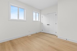3 level 1/2 duplex with above ground 1 bedroom suite! Main floor enjoys Primary bedroom with walk-in closet and tiled ensuite, modern kitchen with sleek flat panel cabinetry, quartz countertops, centre island, spacious great room area with stunning fireplace! Top floor provides 2 bedrooms , full bathroom and laundry. Basement is fully finished with bedroom, bathroom, laundry, kitchen and living room! 2 car garage , heat pump, long life metal roof, better choice than a townhome with no bylaws, rules or strata fees, call today!