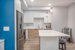 Welcome to this inviting home in the sought-after Lakeview Terraces community. This lower level unit has 2 spacious bedrooms and 2 full bathrooms, this lower level condo features a functional open-concept layout with beautiful vinyl flooring. The large bedrooms provide plenty of room to relax, while the oversized laundry/storage room offers excellent additional storage space. Situated on the ground floor, you will enjoy easy access from your parking stall and the convenience of never having to wait for the elevator! Lakeview Terraces is a family and pet friendly complex with fantastic amenities, including a clubhouse with a fully equipped fitness room and ability to rent the space for entertaining. With 2 assigned parking stalls - one roughed in electric charging station, low strata fees, this home is great for the first time buyer, investors or for those looking to downsize. Ideally located close to shopping, schools and transit. This home is move in ready, call to view today!